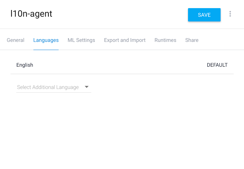 2. Fügen Sie dem Agent Sprachen hinzu, indem Sie unter dem Zahnradsymbol des Agents auf das +-Symbol klicken. Der Tab Sprachen wird angezeigt: