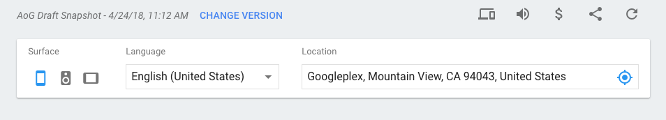 - La simulazione della lingua ti consente di impostare le impostazioni internazionali di un dispositivo per testare la logica e le risposte specifiche per le impostazioni internazionali nella tua Azione.
