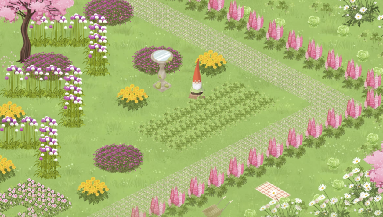 Gnome Garden features a quirky host, Gnorman, who asks players a series of questions and uses their responses to grow plants in a garden. Gnorman may ask, "Would you rather stroll on a cloud or a sand dune?". If you reply with "cloud", Gnorman adds moss to your garden, replying, "You know what feels like walking on a cloud? Moss! And I've planted some on this path." The garden then populates with rows of bright green moss.