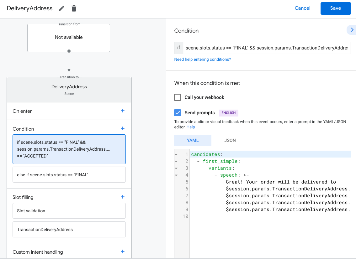 scene.slots.status == "FINAL" && session.params.TransactionDeliveryAddress.userDecision == "ACCEPTED"