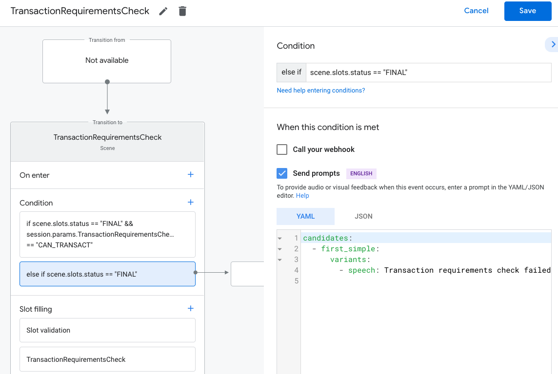 scene.slots.status == "FINAL" && session.params.TransactionRequirementsCheck.resultType == "CAN_TRANSACT"
