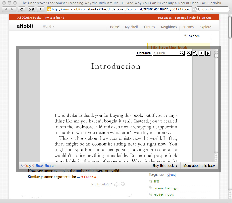 En el caso de los libros que Google digitalizó, aNobii destaca de forma destacada la función Vista previa de Google, lo que permite a los usuarios explorar el libro de inmediato.