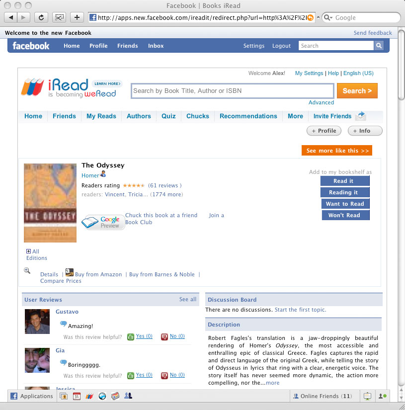 weRead is a distributed, online community for book lovers. Our mission is to promote readership of books worldwide by helping people find great books to read. Members of weRead can rate, review and organize books they have read; they can see what their friends are reading and recommend good books to their friends; they can become fans of their favorite authors; and they can start an online book club.
