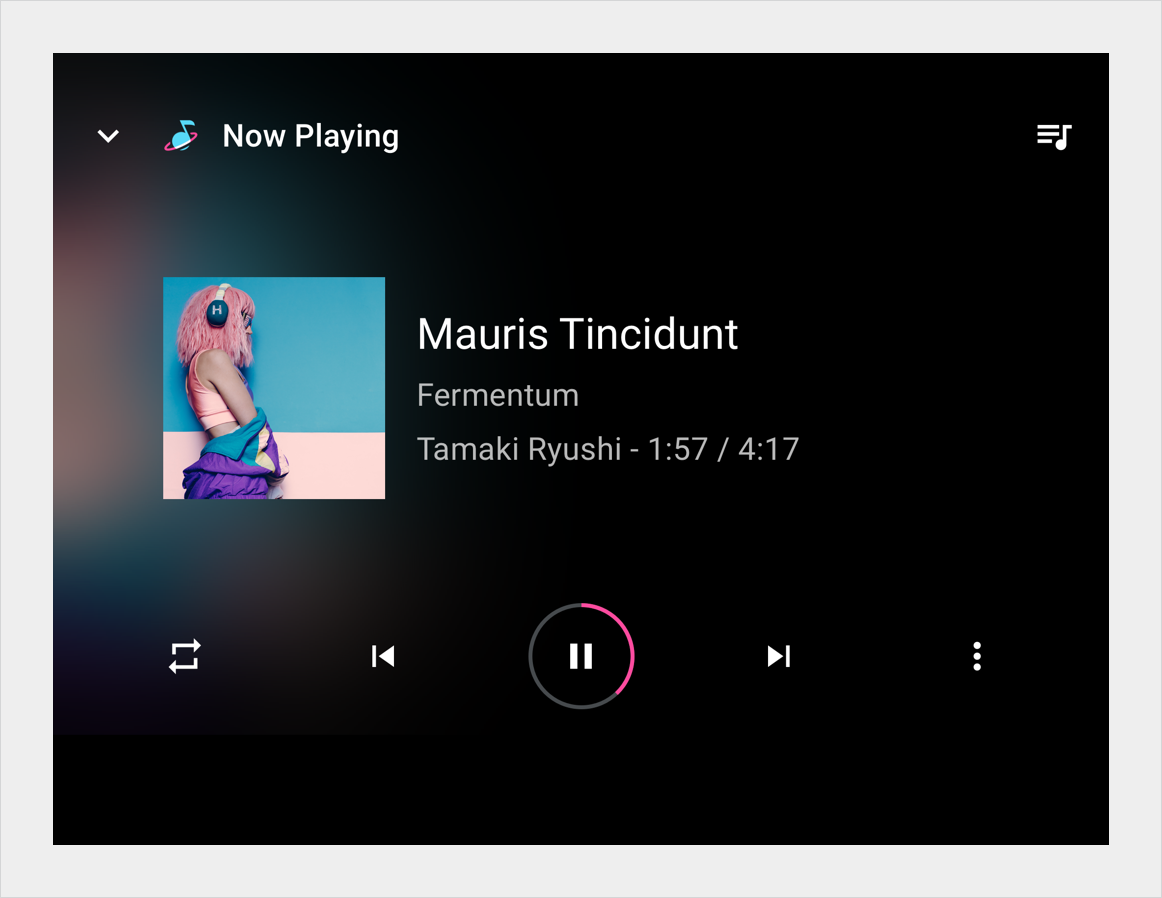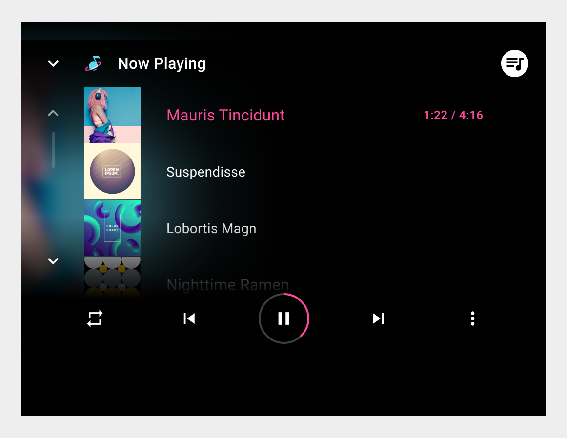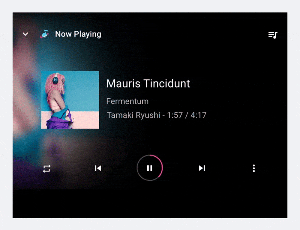 כדי להתחיל בהפעלה, המשתמש בוחר בפריט שניתן להפעיל במרחב התוכן, כמו אלבום או שיר, ותצוגת ההפעלה תחול על כל שטח התוכן. תצוגת ההפעלה מציגה מטא נתונים ופקדי הפעלה עבור התוכן שנבחר. המשתמשים יכולים לשלוט בהפעלה באמצעות הפקדים האלה וגם באמצעות תנועות.