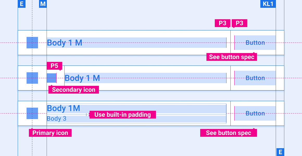 - Cabeçalho do app:quando configurado como cabeçalho, o componente contém espaço para texto opcional, usando o mínimo de ícones e botões. Normalmente, inclui um título na tela e uma seta para voltar.
