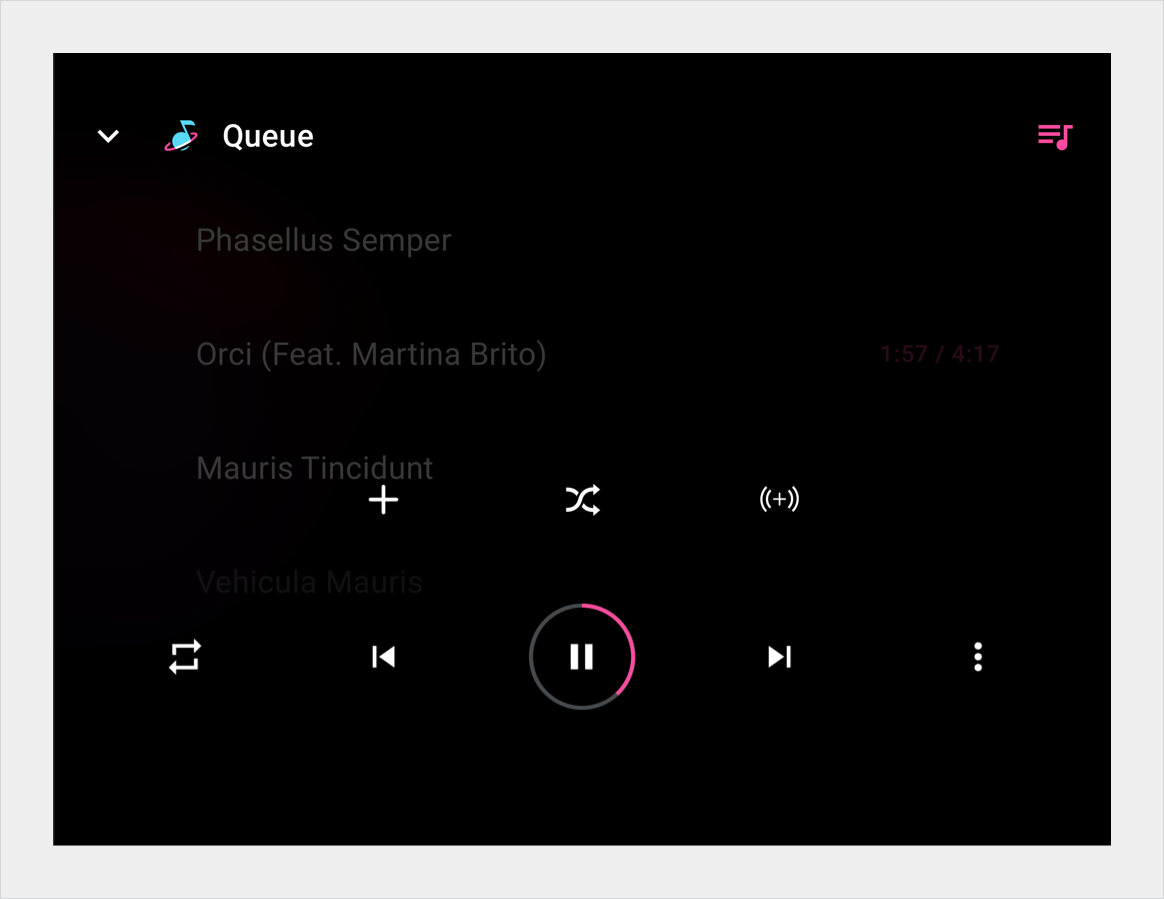 לסרגל הבקרה יש שני פורמטים: לא מורחב ומורחב. הגרסה הלא מורחבת יכולה לכלול עד 5 אמצעי בקרה. באפליקציות מדיה, אחת מהאפשרויות היא 'הפעלה/השהיה'.
