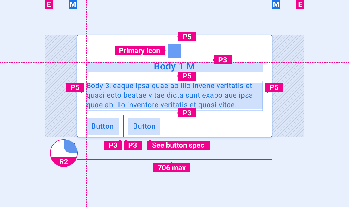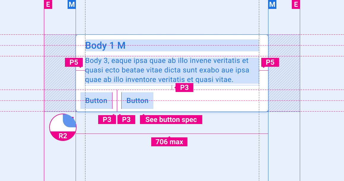 O sistema de design oferece orientações para personalizar componentes usando layout, cores, tipografia e dimensionamento.