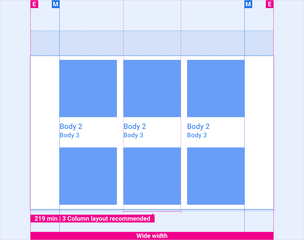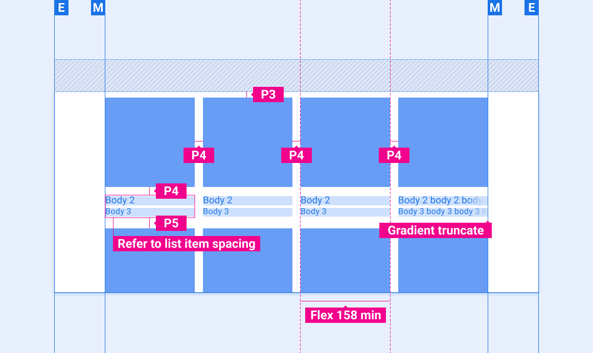 As grades contêm texto e controles de interface. Como os usuários precisam responder a eles, eles nunca devem ser obscurecidos, seja por outros elementos ou pela borda da tela.