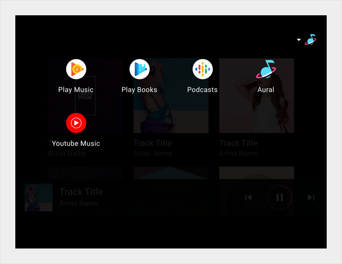 A visualização em grade exibe duas ou mais colunas de imagens que representam itens de conteúdo, com um texto curto abaixo de cada imagem. Essa visualização é melhor quando os usuários dependem principalmente de imagens para fazer as seleções.