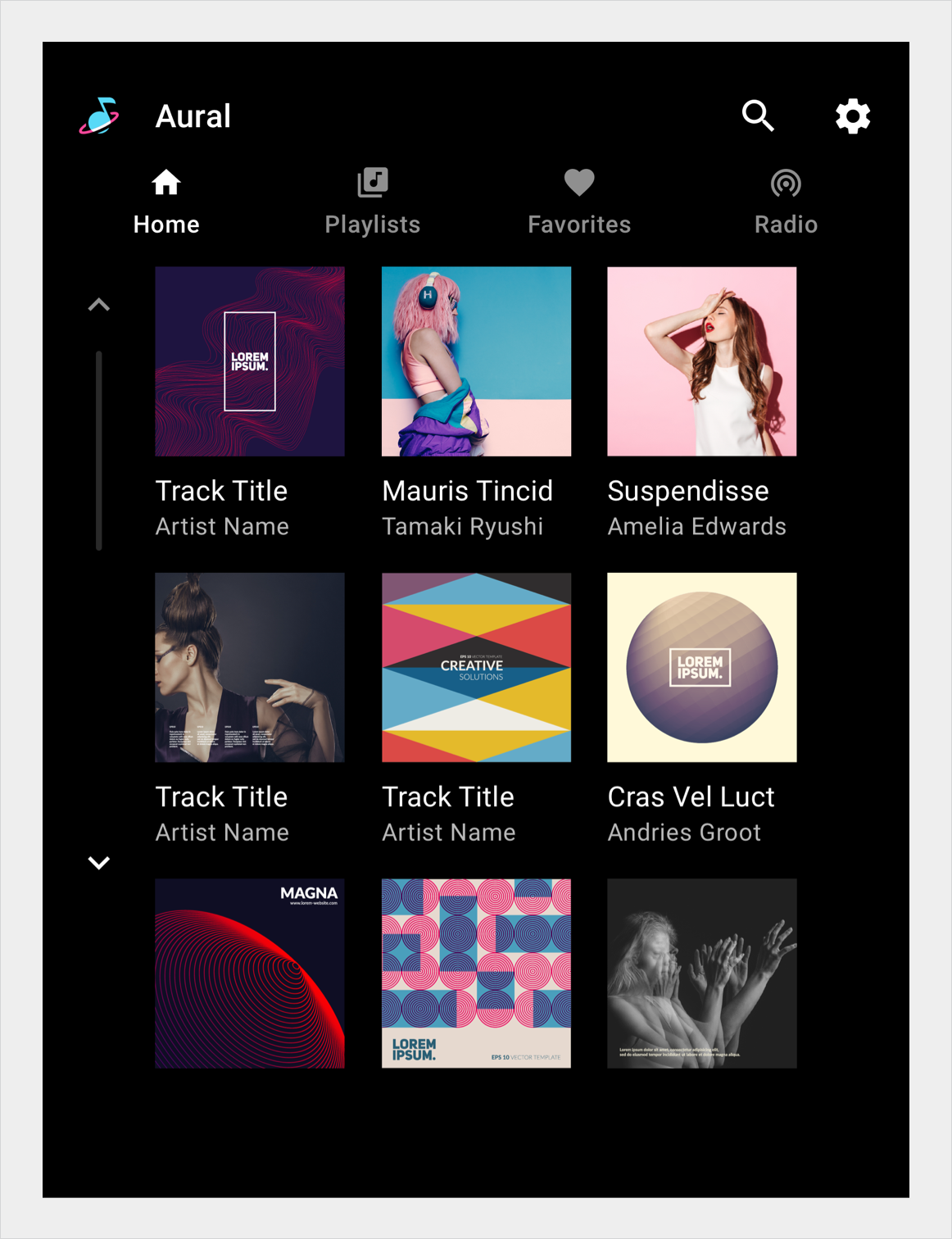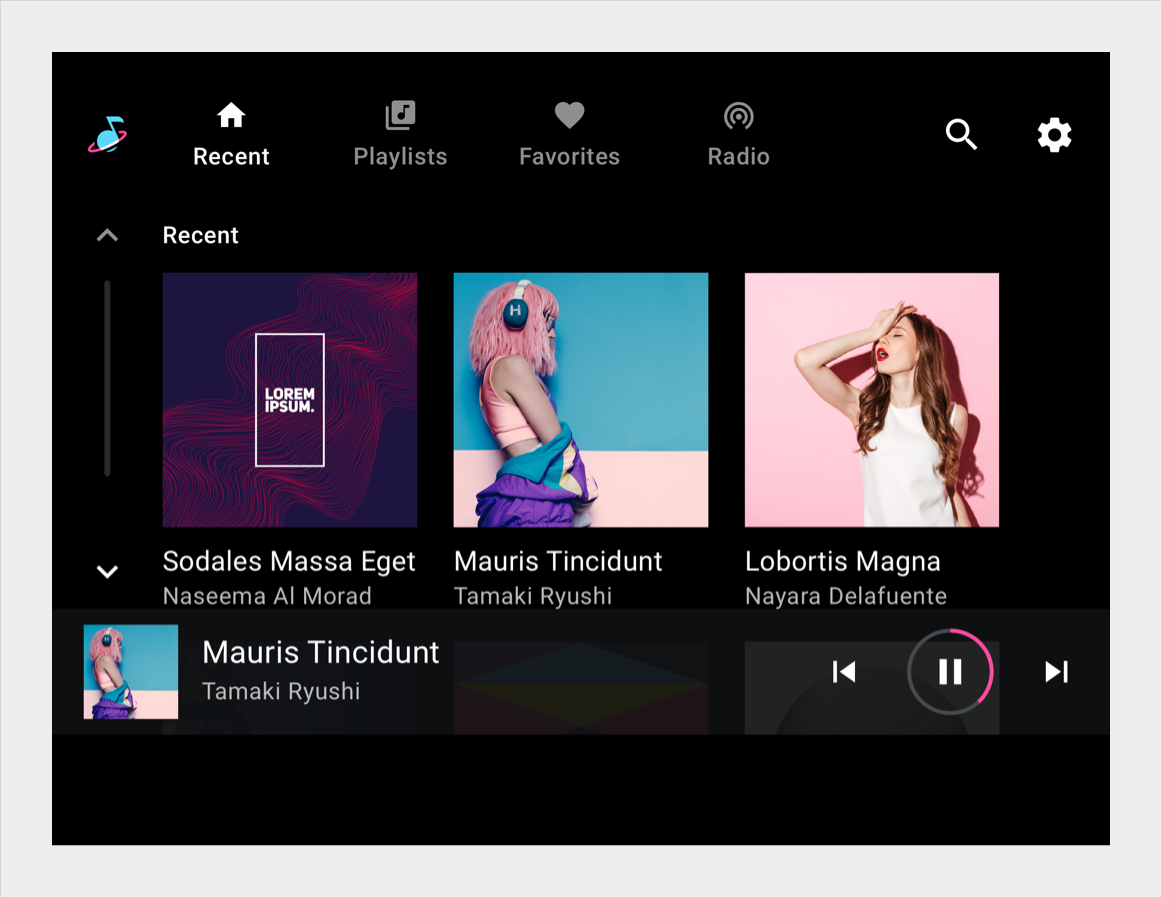 המשתמשים מקיימים אינטראקציה עם פסי גלילה באמצעות מגע, גלגל חוגה או לוח מגע. הקשה על החיצים בסרגל הגלילה תזיז את התוכן לפי "דפים" - כלומר, במרווחים מקבילים לגובה של המסך. עם זאת, אם משתמשים נוטפים במהירות כדי לגלול (בהתאם לרגישות של מסך המגע), תנועת ההנעה יכולה ליצור מומנטום אינטי שגולל מעבר לדף אחד. בלי קשר לאופן שבו מופעלת הגלילה, תנועת הגלילה תמיד צריכה להצמיד לפריט.