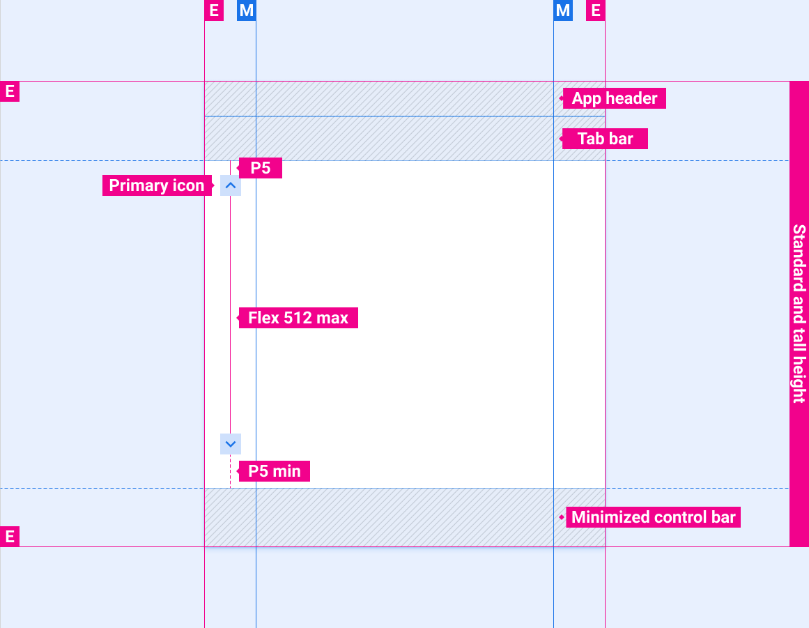 המיקום של סרגל הגלילה עם כותרת האפליקציה וסרגל הבקרה המורחב