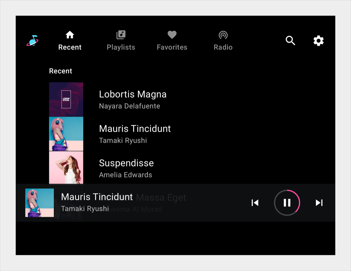 Subcabeçalhos são blocos de lista que identificam seções de conteúdo em uma visualização de lista ou grade. Normalmente, elas são usadas para subseções de conteúdo produzido por um filtro ou classificação.