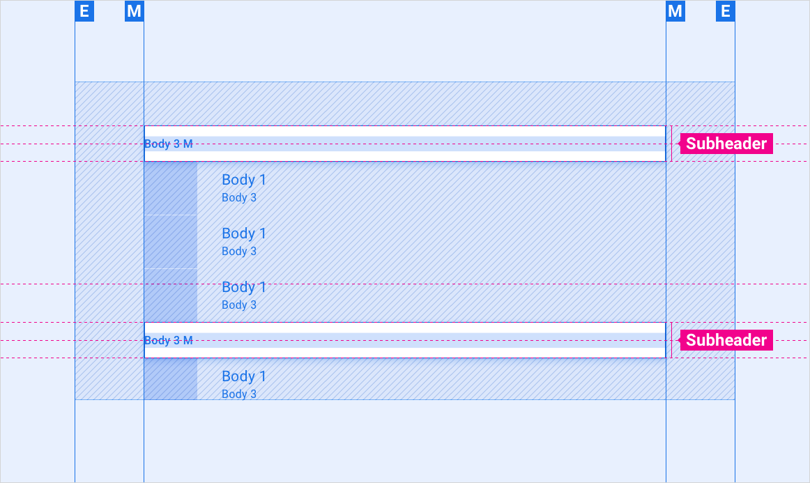 Quando o conteúdo abaixo do subcabeçalho é rolado, ele permanece fixado na parte superior da tela até ser empurrado para fora da tela pelo próximo subtítulo.