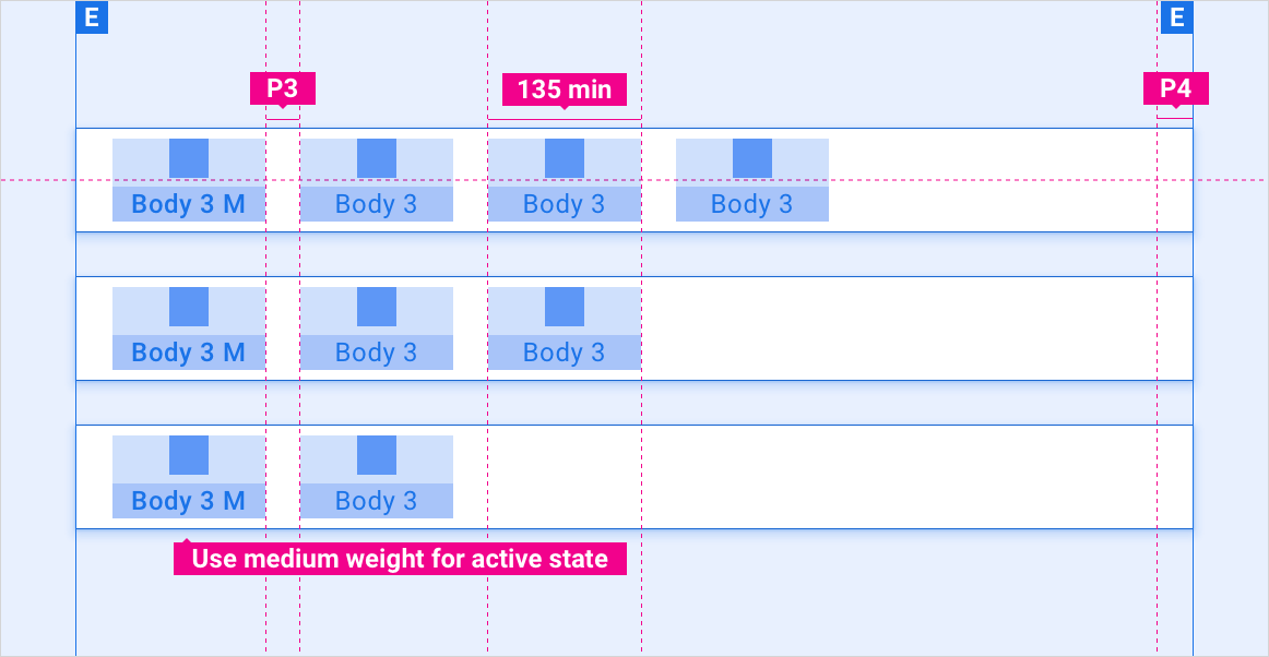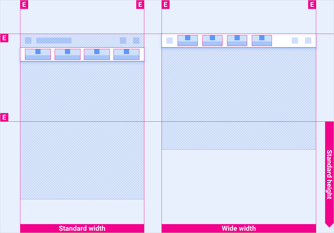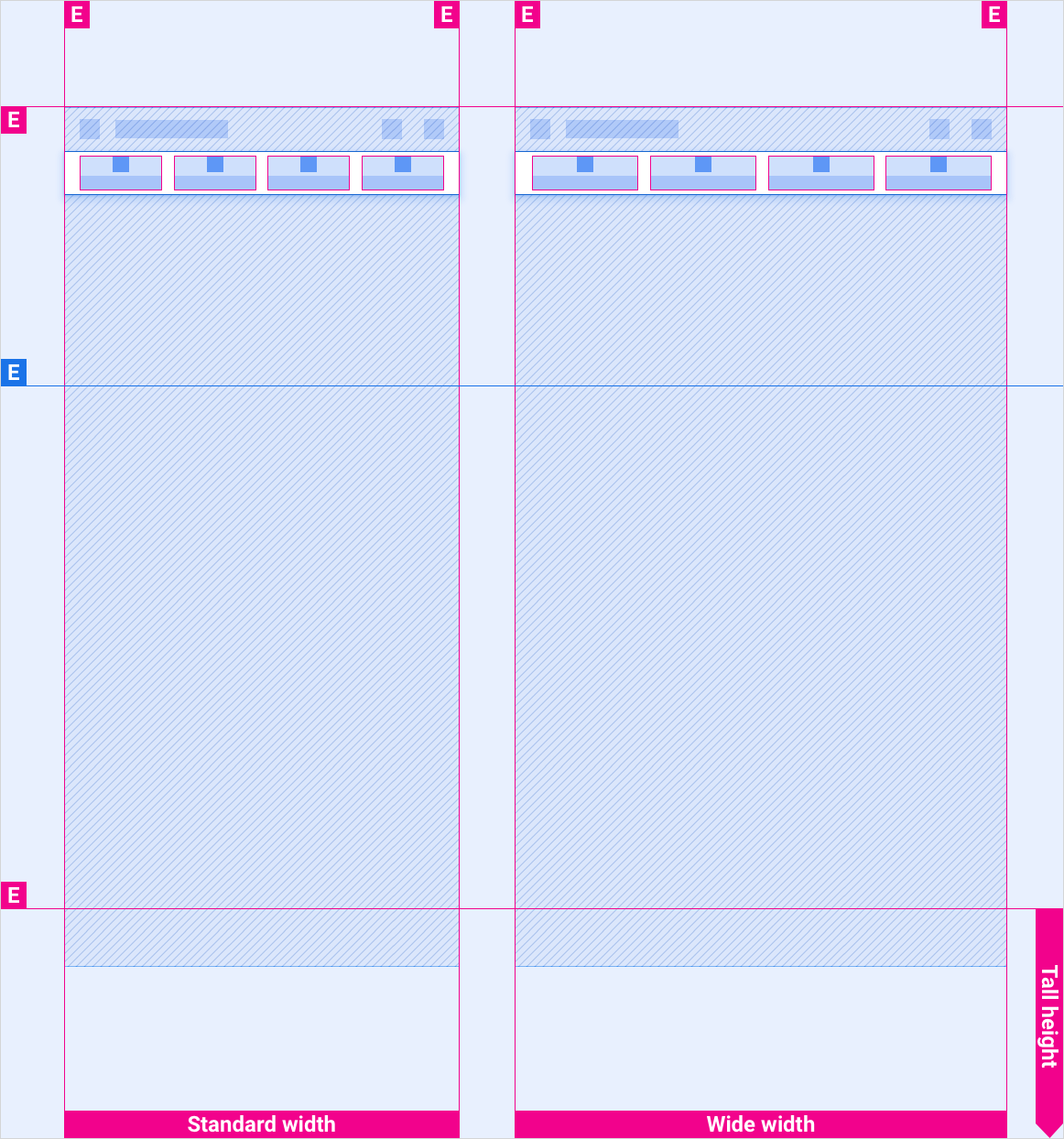 פריסות העזר האלה מראות איך להתאים כרטיסיות כך שיתאימו למסכים במידות רוחב וגובה שונות. (קטגוריות רוחב וגובה מוגדרות בקטע פריסה). לתשומת ליבך, כל ערכי הפיקסלים מופיעים בפיקסלים מעובדים, לפני שמבצעים דגימת הקטנה או דגימה למעלה.