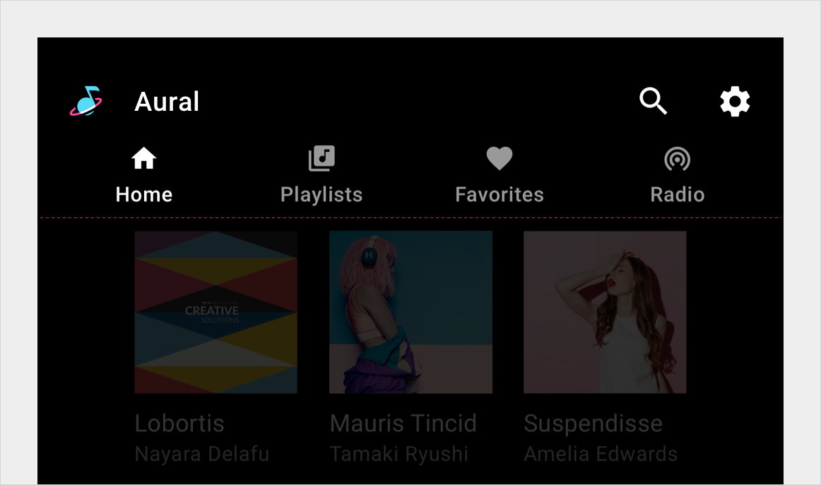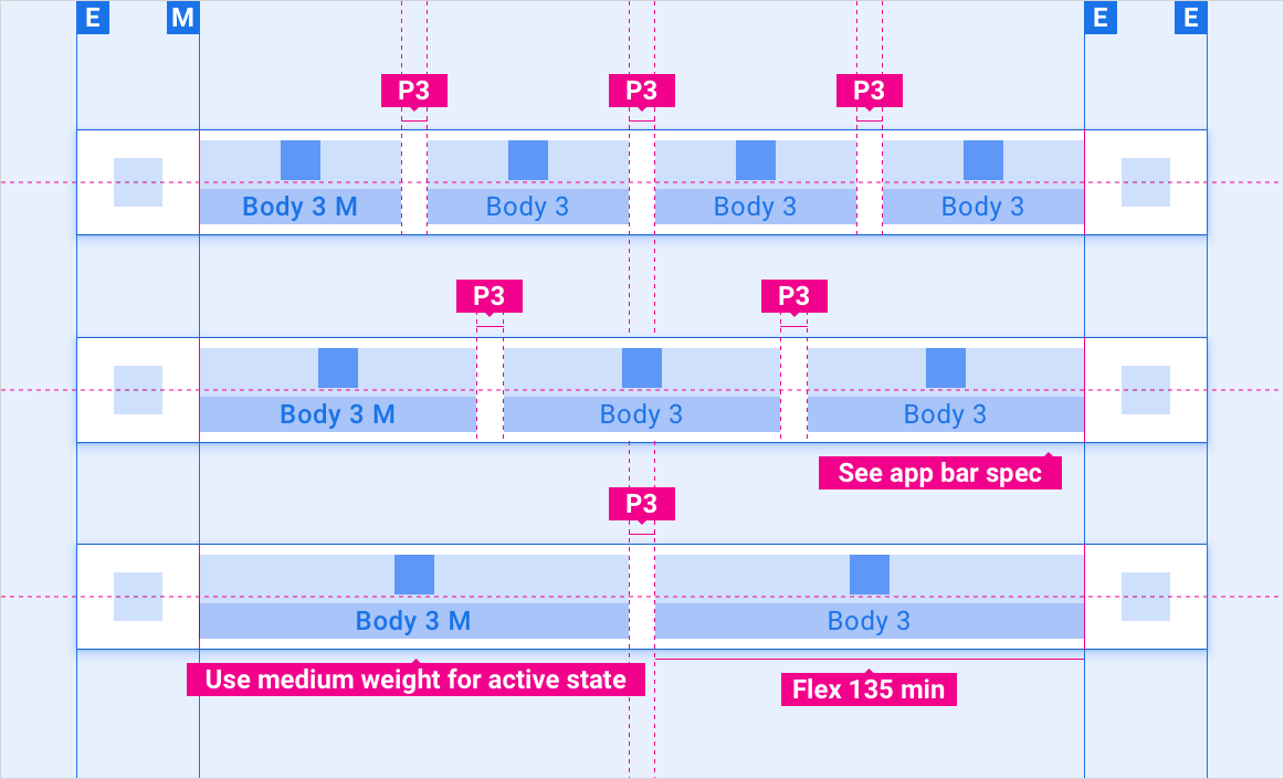 כרטיסיות שמוצבות בסרגל האפליקציות - יישור גמיש
