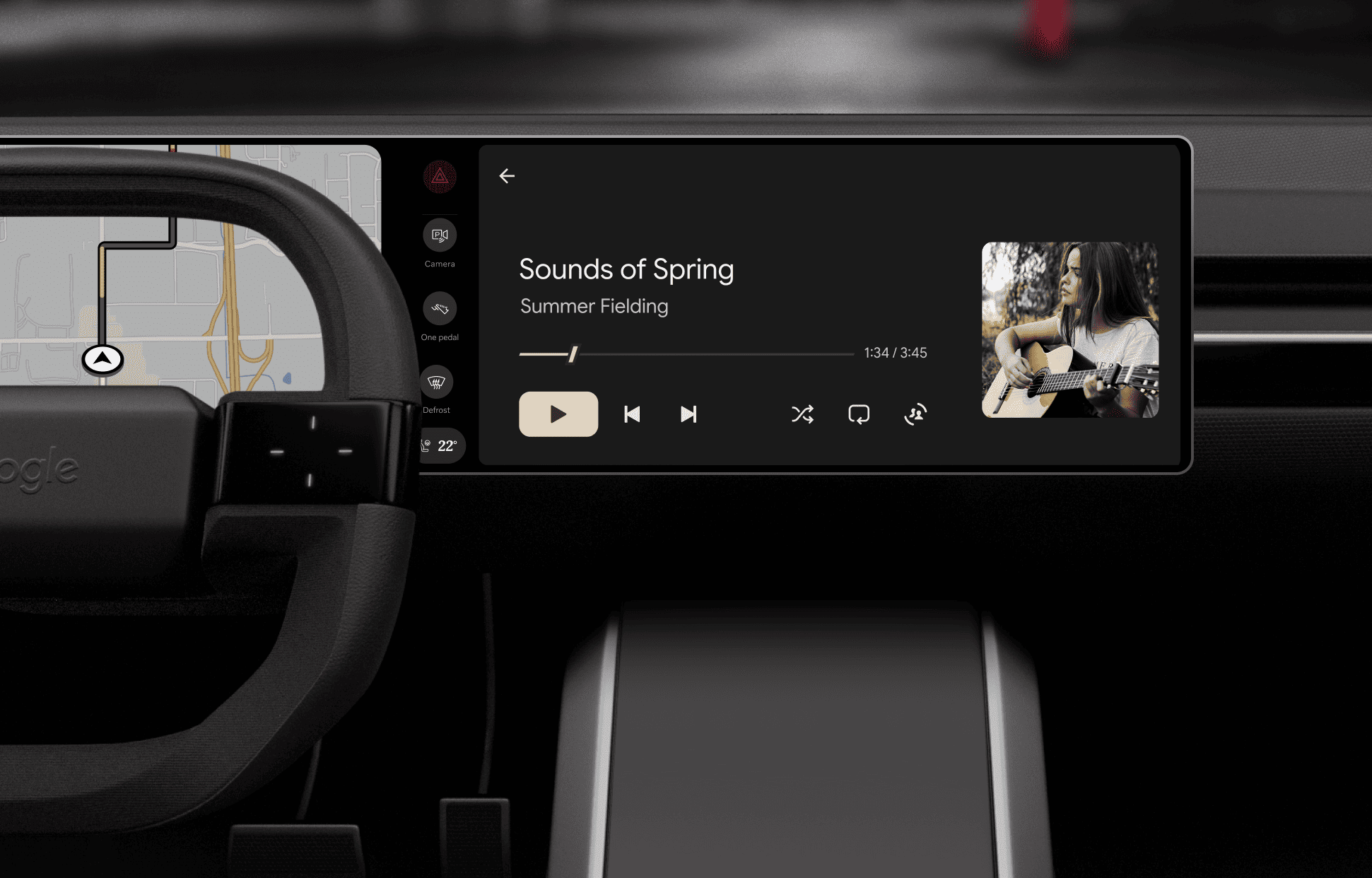 برای نگاهی دقیقتر به تجربه رسانه در Android Auto، به Android Auto > برنامههای رسانه مراجعه کنید. برای مشاهده نحوه عملکرد این تجربه در خودروهایی که Google داخلی دارند، به Automotive OS > Media Apps مراجعه کنید.