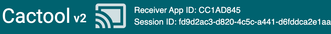 Lorsque l'outil CaC est connecté à l'application Web Receiver, l'icône Cast s'affiche avec une forme de cadre rempli. L'ID de l'application Web Receiver et l'ID de session sont également affiché en haut de l'outil.