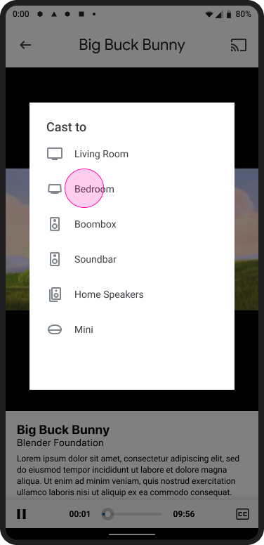 Yayın oturumu başlamadan önce hem gönderen cihazın (ör. cep telefonu veya tablet) hem de alıcı cihazın (ör. TV'ye takılı bir Chromecast) aynı kablosuz ağa bağlı olması gerekir.