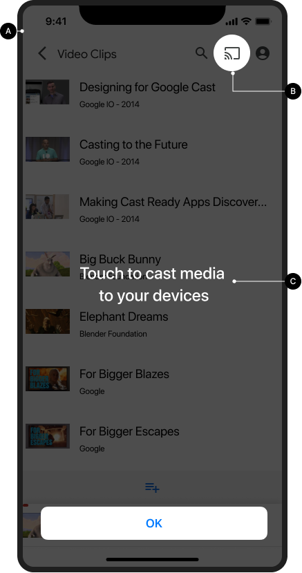 การเปิดตัวปุ่มแคสต์ช่วยให้ผู้ใช้เดิมทราบว่าแอปที่ส่งรองรับการแคสต์แล้วในตอนนี้ และยังช่วยผู้ใช้ที่เพิ่งเริ่มใช้ Google Cast อีกด้วย