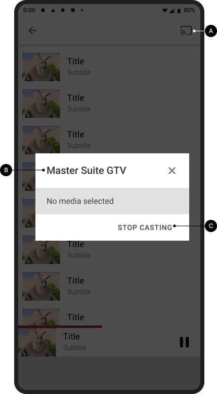 การแตะปุ่มแคสต์จะแสดงกล่องโต้ตอบแคสต์