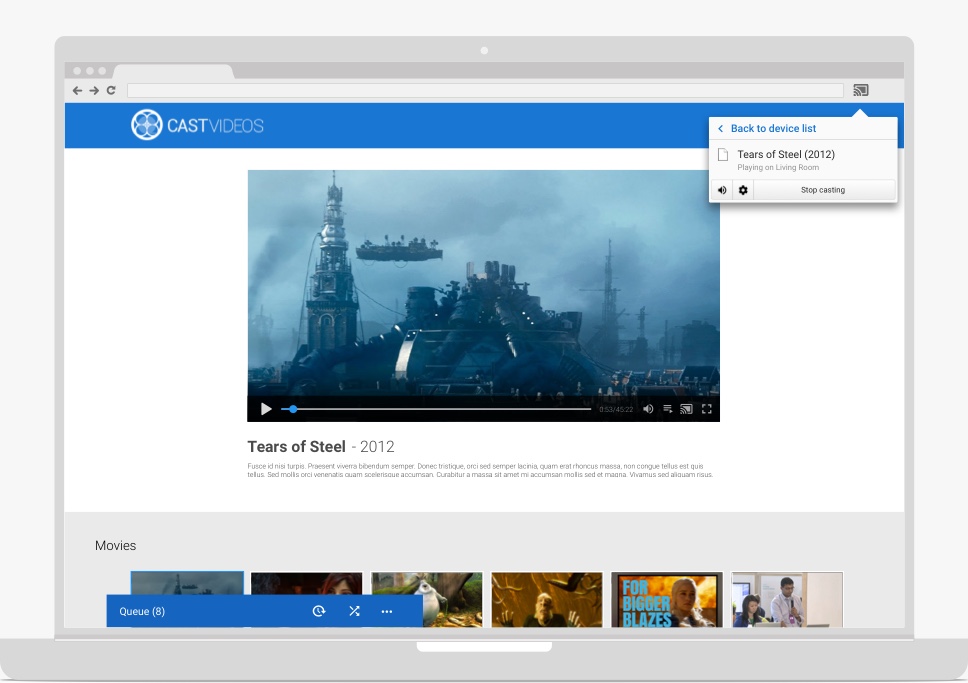為提供最佳使用者體驗,除了迷你控制器外,請在Cast 對話方塊中提供控制選項。