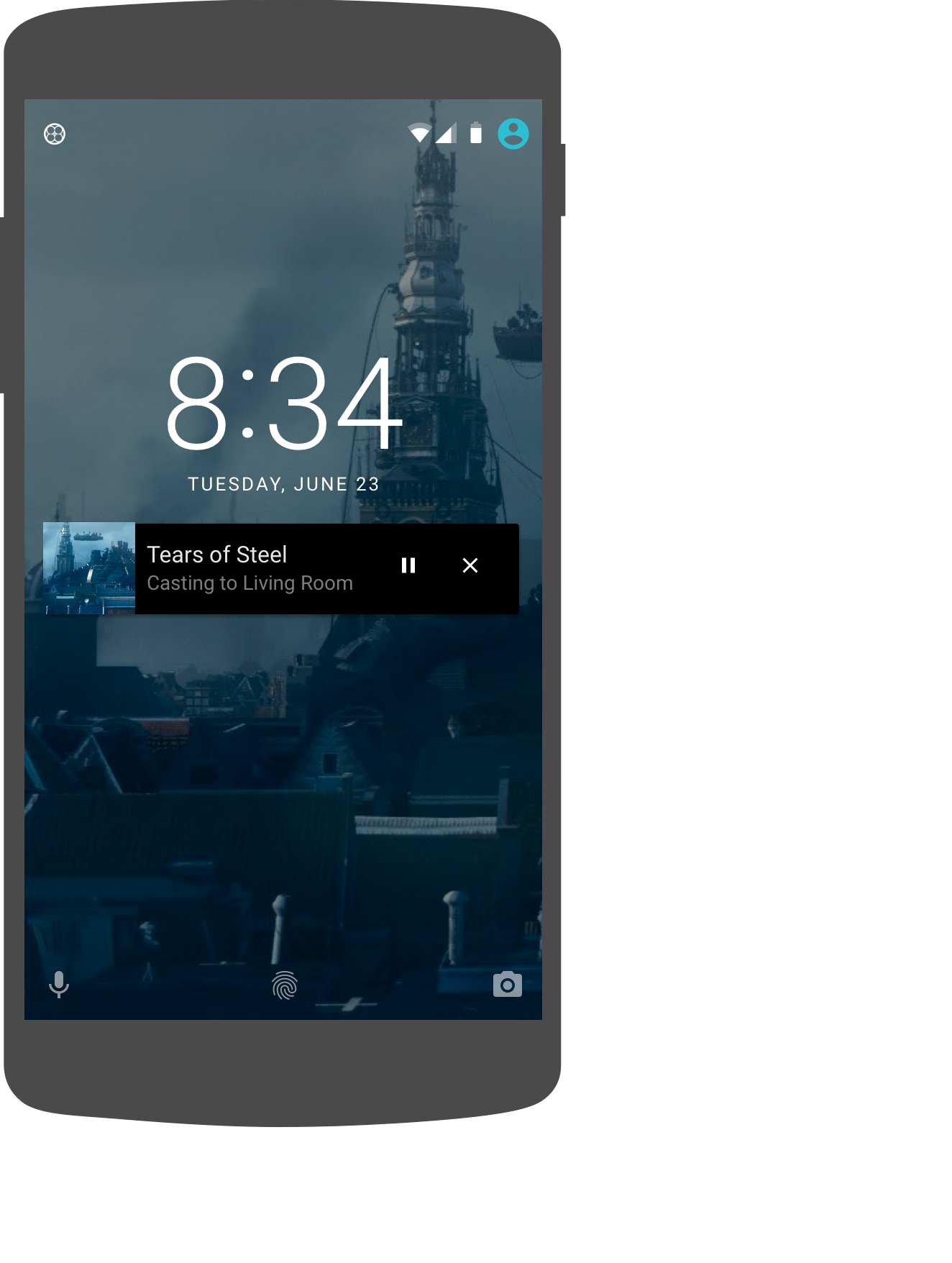 MediaSessionorMediaSessionCompat(for versions 4.4 and 4.3) orNotification(for 5.0 and later).