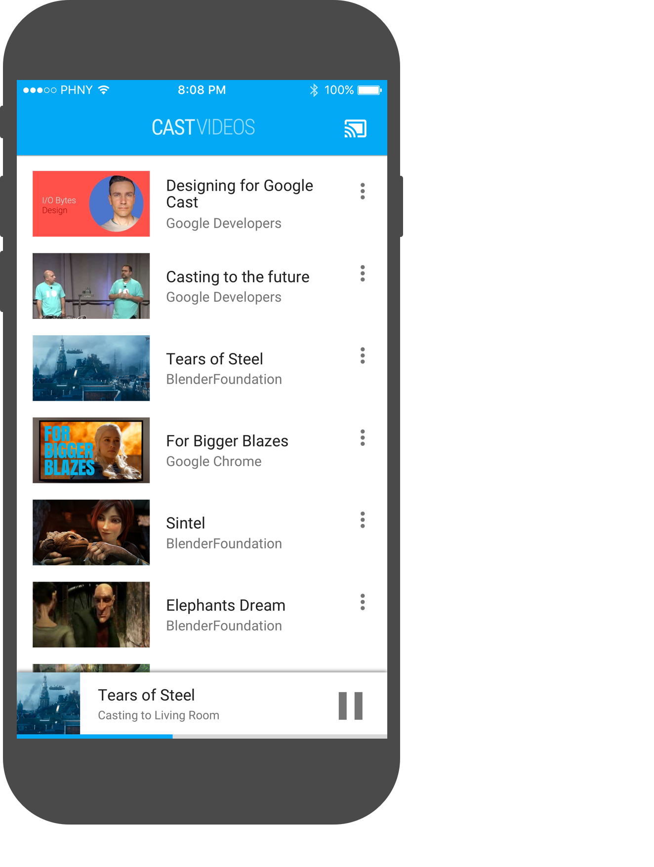 Catatan: Sesuai dengan Persyaratan Layanan Tambahan Developer Google Cast SDK, aplikasi media Cast harus menggunakan API kontrol pemutaran (Pesan Pemutaran Media) yang ditentukan untuk SDK guna mengontrol pemutaran media di Penerima Web.