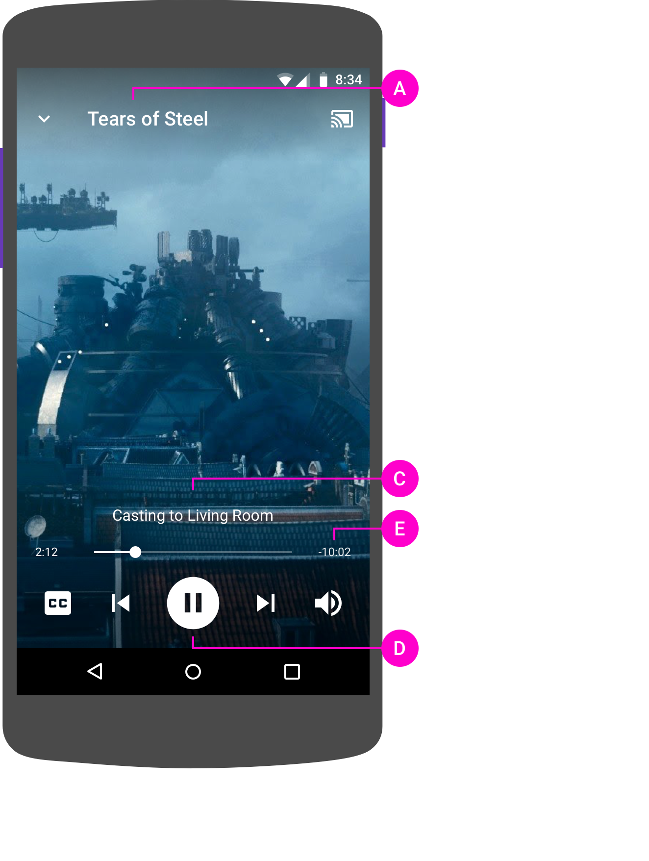 Aby zapewnić użytkownikom jak największą wygodę, udostępnij elementy sterujące w oknie dialogowym Cast oprócz miniodtwarzacza.