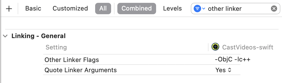 - Configure a biblioteca dinâmica GoogleCastSDK: