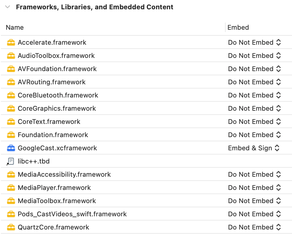 General, seleccionaEmbed and SignparaGoogleCast.xcframework.