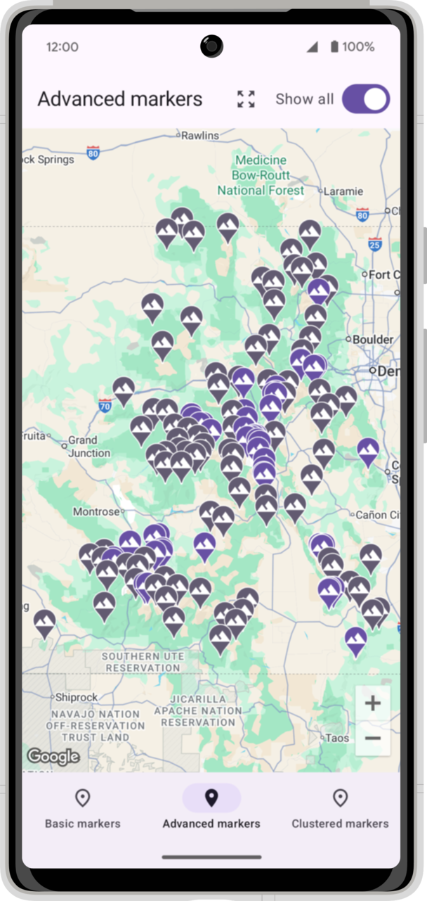 Questo codelab ti insegna a integrare Maps SDK for Android con la tua app e a utilizzare le sue funzionalità principali creando un'app che mostri una mappa delle montagne del Colorado, negli Stati Uniti, utilizzando vari tipi di indicatori. Inoltre, imparerai a disegnare altre forme sulla mappa.