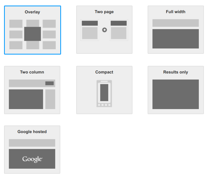 您还可以利用可编程搜索元素控制 API 进一步自定义搜索界面。许多自定义设置都可通过 HTML 属性实现。 例如,您可以从六种布局中为结果页选择一种,也可以设置要返回的搜索结果数量。