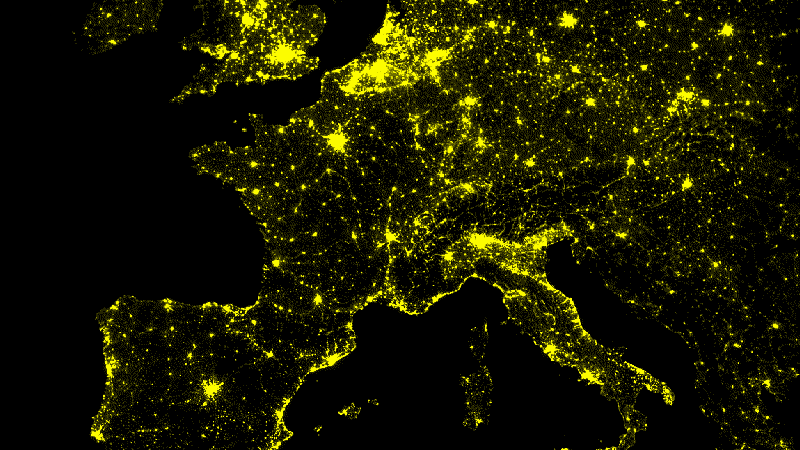 In Earth Engine sono disponibili anche i dati di altri sensori di immagini satellitari, tra cui le immagini notturne del sistema di scansione operativa (DMSP-OLS) del programma di satelliti meteorologici della difesa, che raccoglie immagini delle luci notturne con una risoluzione di circa 1 km in modo continuo dal 1992.