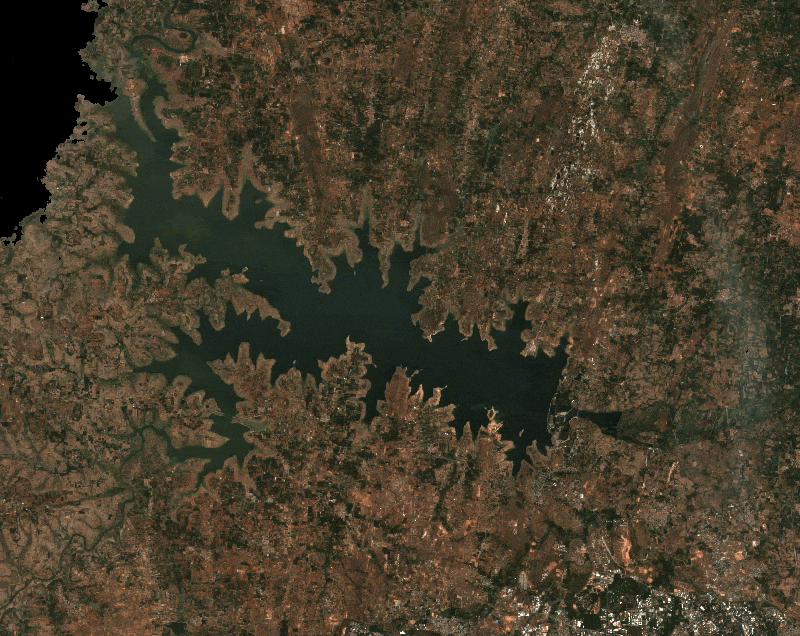 Let’s start by defining a region of interest. For this tutorial, we will pick a region around the Krishna Raja Sagara (KRS) Reservoir in India and define a polygon as the geometry variable. Alternatively, you can use the Drawing Tools in the Code Editor to draw a polygon around the region of interest that will be saved as the geometry