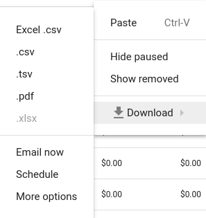 यूज़र इंटरफ़ेस (यूआई) में, रिपोर्ट को CSV, TSV या XML जैसे अलग-अलग फ़ॉर्मैट में डाउनलोड किया जा सकता है.