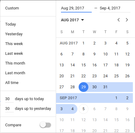 | ช่วงวันที่ | ช่วงวันที่จะแมปกับคําสั่ง WHERE ที่กรองใน segments.date |