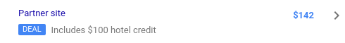 O Google faz a correspondência entre seus metadados e os dados específicos do itinerário para renderizar o conteúdo dos seus anúncios. Há um processamento especial para combinar os nomes e as descrições dos elementos <RoomData> e <PackageData>, permitindo que o quarto físico seja descrito em <RoomData> e os recursos de tarifa e os detalhes do pacote em <PackageData>.