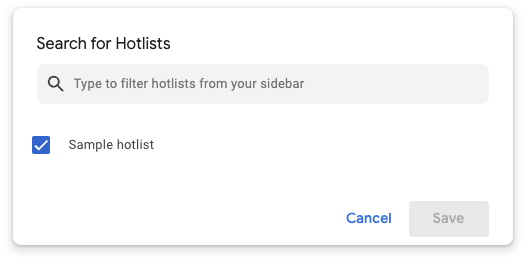- اسم قائمة مفضّلة يظهر في حقلَي العناصر المحدّدة أو الإضافة باستخدام طلب بحث في صفحة إعدادات مجموعة الإشارات المرجعية.