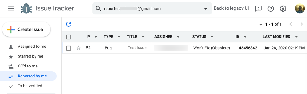 問題を検索すると、Google Issue Tracker から、検索条件に一致する問題の表が返されます。この表はカスタマイズして保存できます。この表では、問題フィールドを含む列を追加、削除、並べ替えて、表示する情報を選択してハイライト表示できます。検索結果ビューでは、問題を一括編集することもできます。