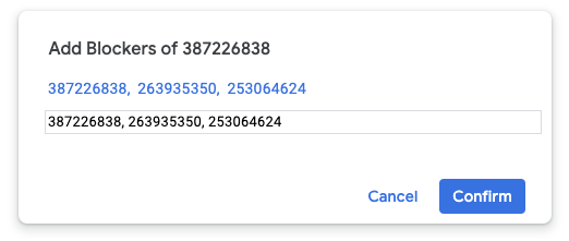 Bu sayfada, Google Sorun Takip Aracı'nda bir sorunun başka bir sorunla nasıl engelleneceği gösterilmektedir.