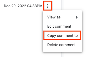 Fai clic sul pulsante "Altro" accanto al timestamp del commento e seleziona l'opzione Copia commento in.