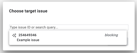 Найдите проблему по URL-адресу или выполнив поиск в Issue Tracker и откройте страницу сведений о проблеме .