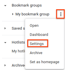 3. बुकमार्क ग्रुप के नाम पर कर्सर घुमाएं और "ज़्यादा" आइकॉन पर क्लिक करें.