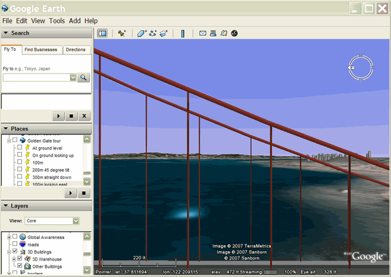 Đây là nội dung mà điểm nhìn này hiển thị trong Google Earth: