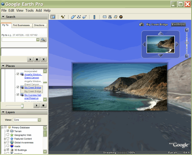 องค์ประกอบ <PhotoOverlay> ใหม่ช่วยให้คุณระบุตําแหน่งทางภูมิศาสตร์ของภาพถ่ายบน Earth ได้ และระบุตําแหน่งและการวางแนวของกล้องที่ดูการวางซ้อนภาพนี้ การวางซ้อนภาพอาจเป็นสี่เหลี่ยมผืนผ้าง่ายๆ แบบ 2 มิติ ทรงกระบอกบางส่วนหรือทั้งหมด หรือทรงกลม (สําหรับพาโนรามาแบบ 360 องศา) การวางซ้อนจะอยู่ในตําแหน่งที่ระบุและหันไปยังกล้อง