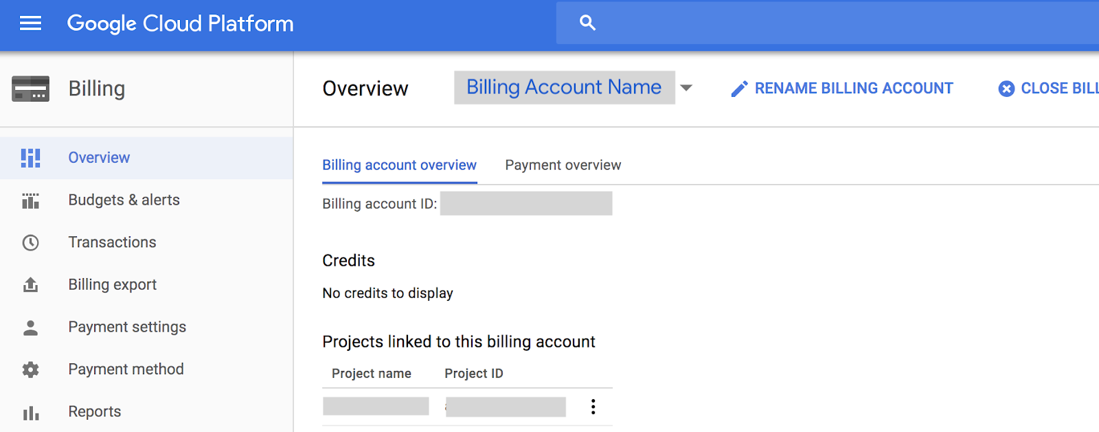 - 前往相应项目的“结算”部分。您也可以通过以下链接访问结算页面:https://console.cloud.google.com/billing