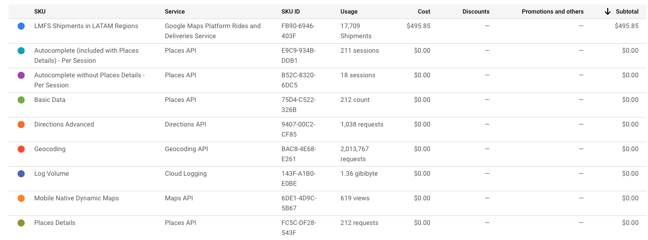 在月末,系统会根据以下因素生成账单:(i) 系统中报告的成功行程或任务数量;(ii) 超出预先设定的限制的任何 Google Maps Platform API 调用量(“超额”)。我们的限值与我们在市场上普遍看到的所需限值保持一致。