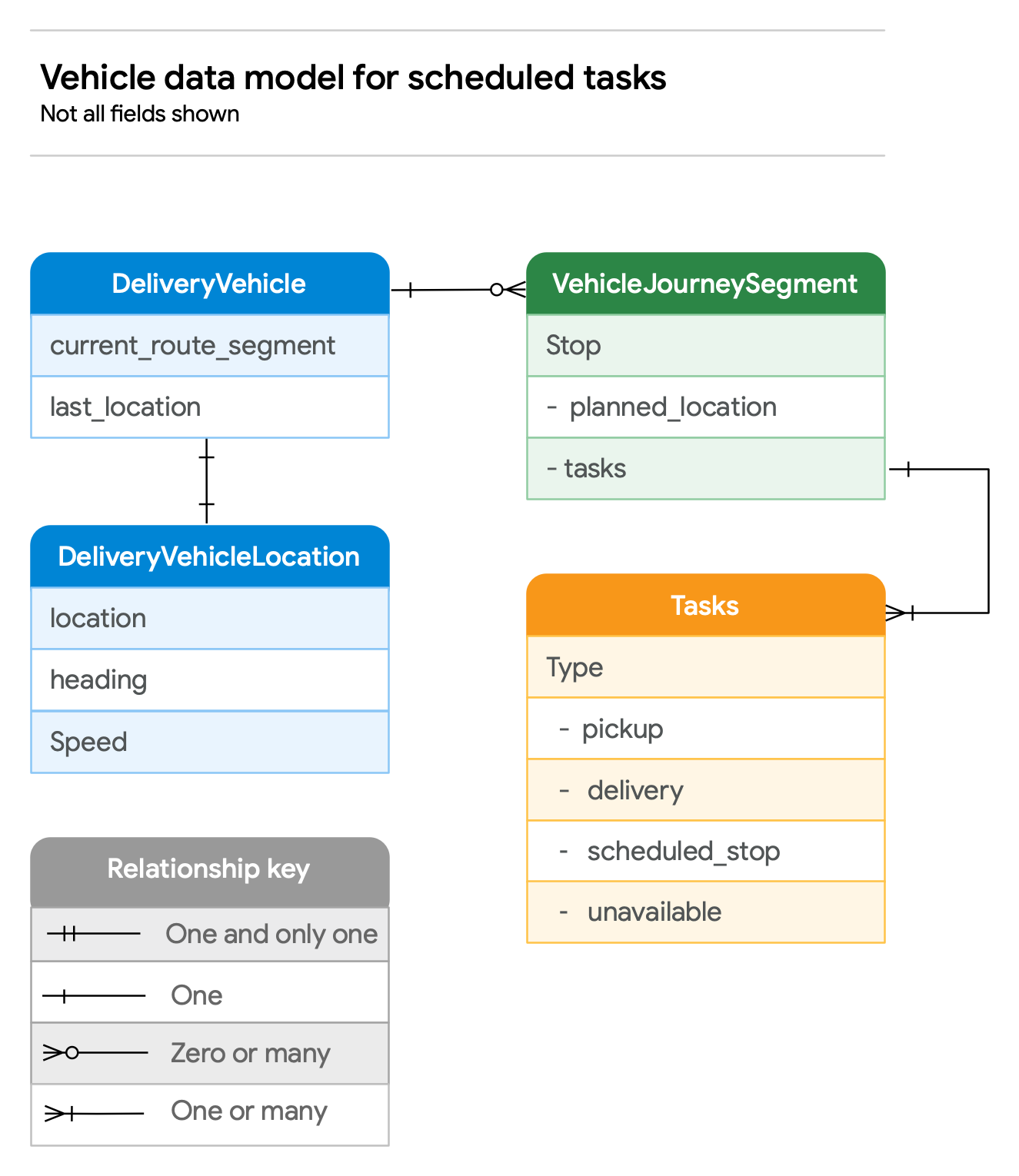 في Fleet Engine، تكون المركبة عبارة عن كيان بيانات يمثل الواقع مركبة يستخدمها السائقون لنقل السلع أو الأشخاص من منشأ إلى الوجهة.