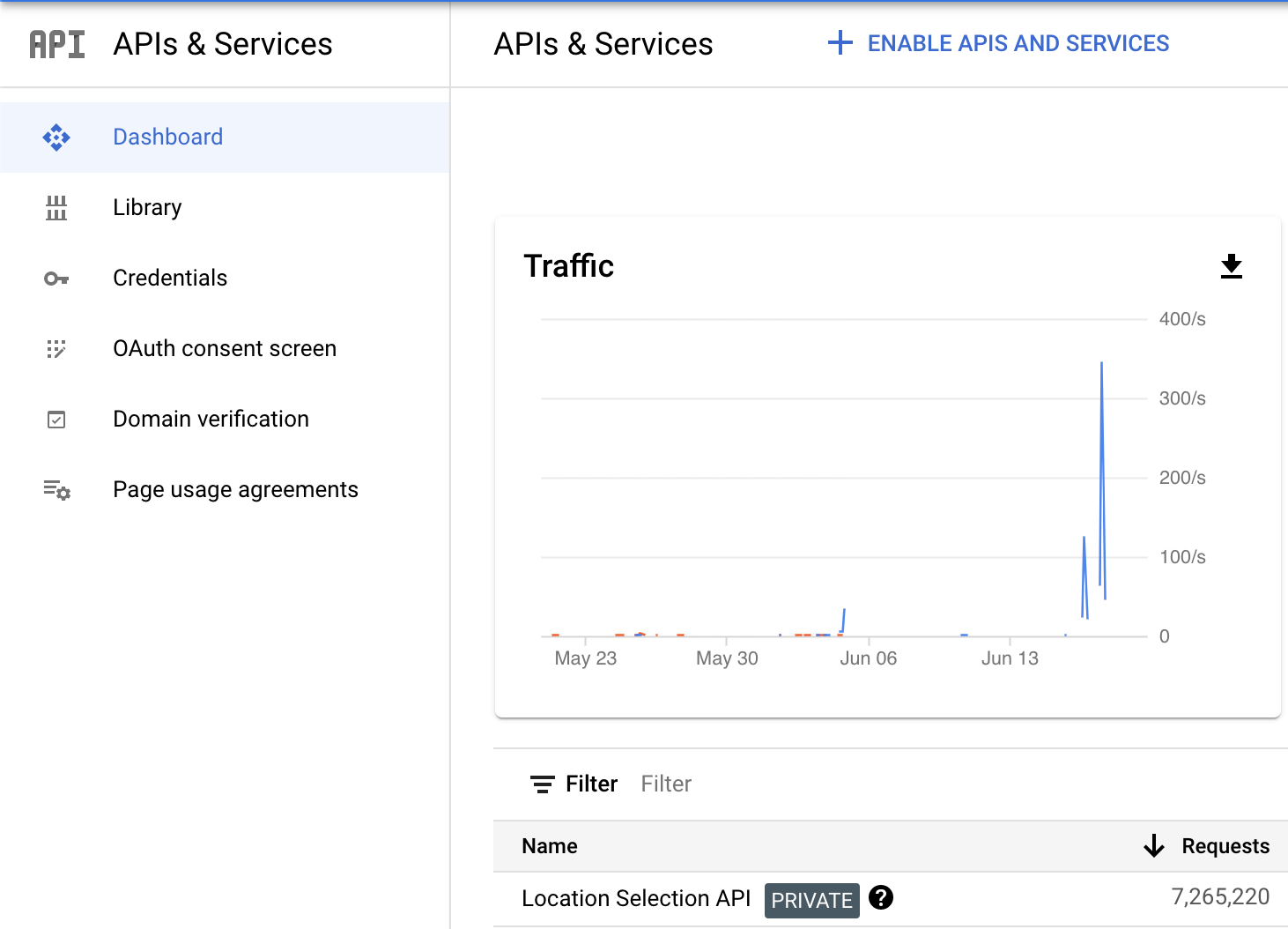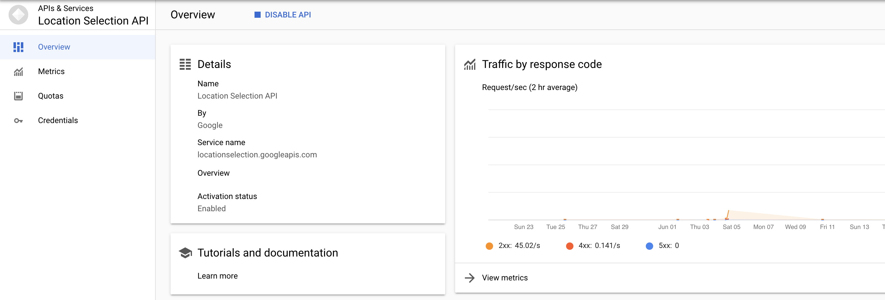 You can monitor your app's Location Selection API usage through Google Cloud console project usage reports.