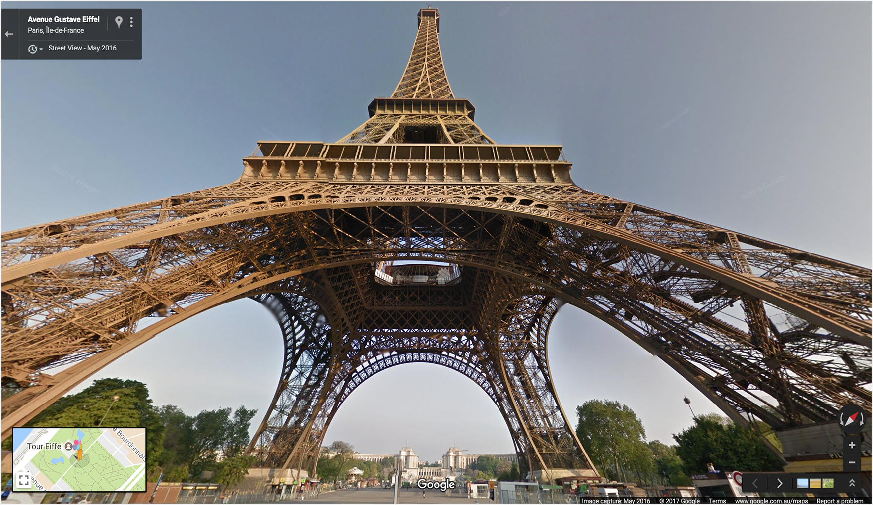 Dalam contoh ini, ID panorama ditemukan, sehingga viewpoint diabaikan. Perhatikan bahwa gambar panorama yang ditampilkan untuk ID pano sedikit berbeda, dan lebih baru, daripada gambar yang ditemukan hanya menggunakan viewpoint.